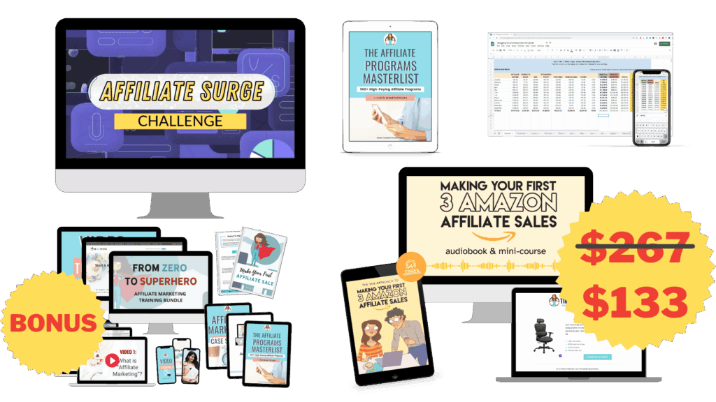 This affiliate marketing bundle is great because it covers everything you need to know as a beginner to get your first affiliate sales – how to figure out what products to promote for your audience, how to promote your affiliate products, and even the legal side of affiliate marketing.