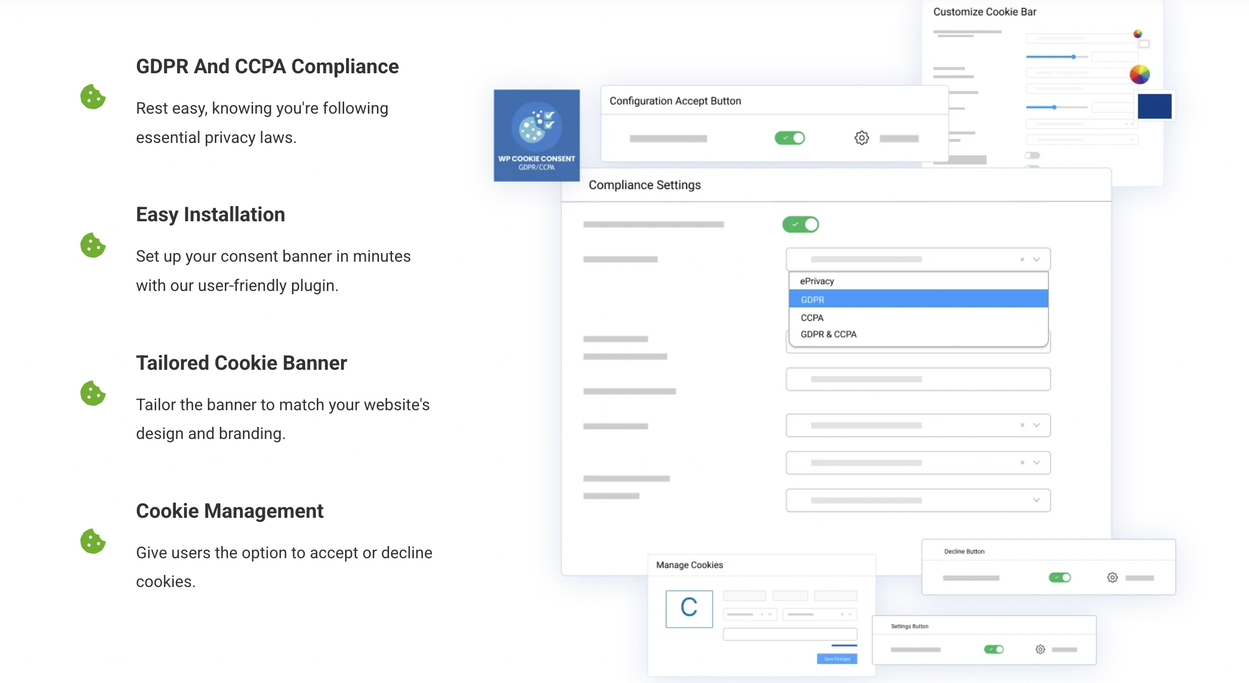 Cookie consent banners are everywhere, but not all are created equal. A non-compliant banner can be just as risky as having none at all. WPLP’s cookie management system is robust and highly customizable.